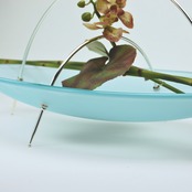宿泊施設のテーブルを華やかに彩るガラス製フルーツボウル。有機的なフォルムと光沢感のあるシルバーフレームが、高級感とやさしさを両立させます。森ひかる氏によるデザインは、実用性とアート性を兼ね備えた一品です。