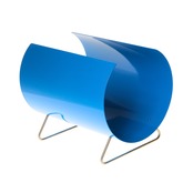 イタリアLIVIT社によるヴィヴィッドブルーのマガジンラック。濡れたような光沢感と曲線美が、来客スペースに洗練された印象を与えます。モダンで機能的な空間演出に最適。