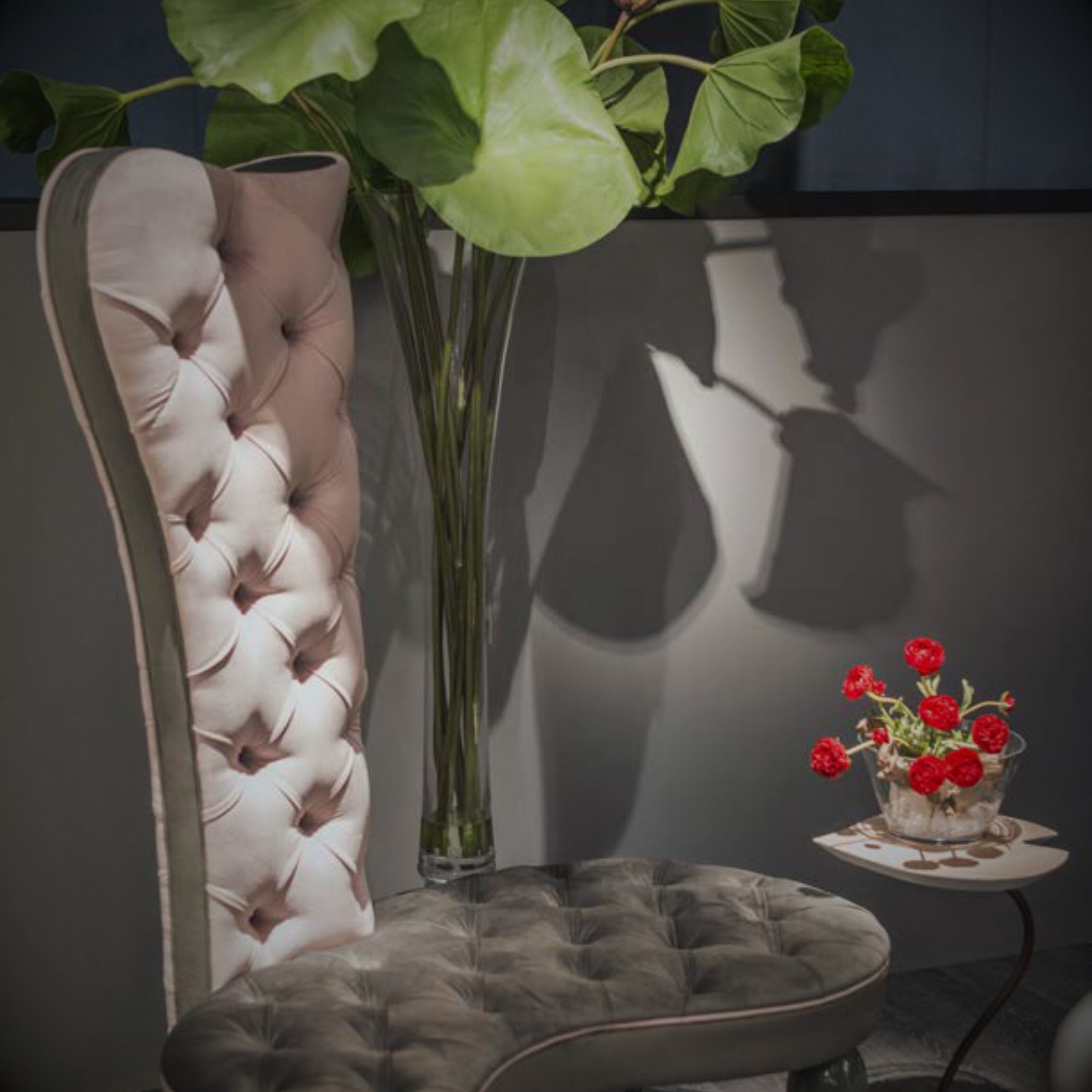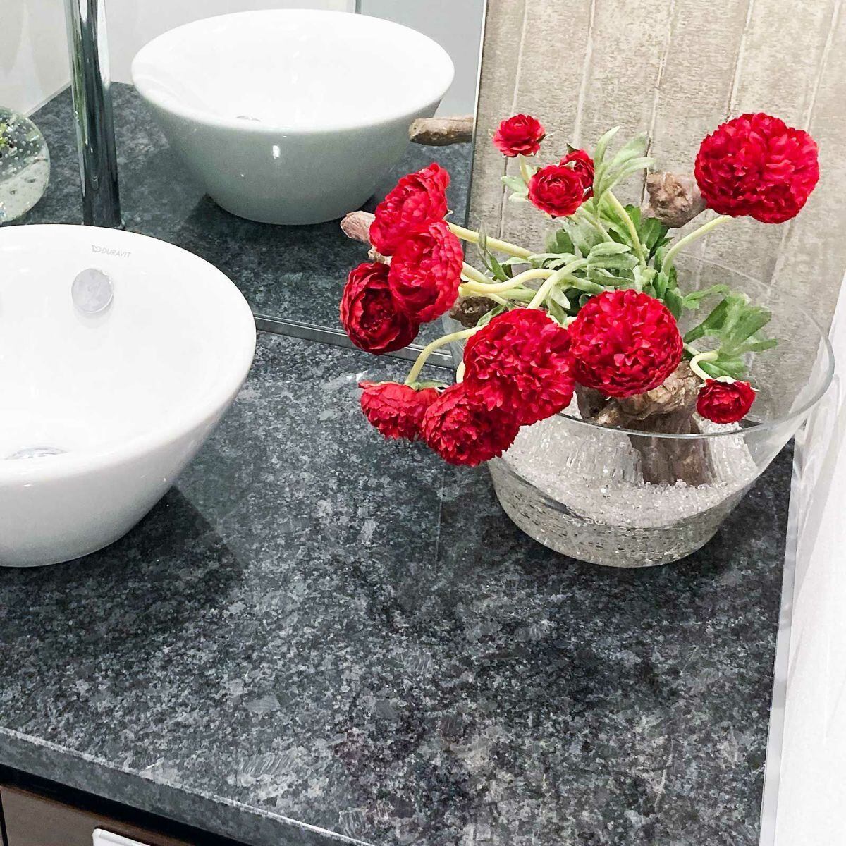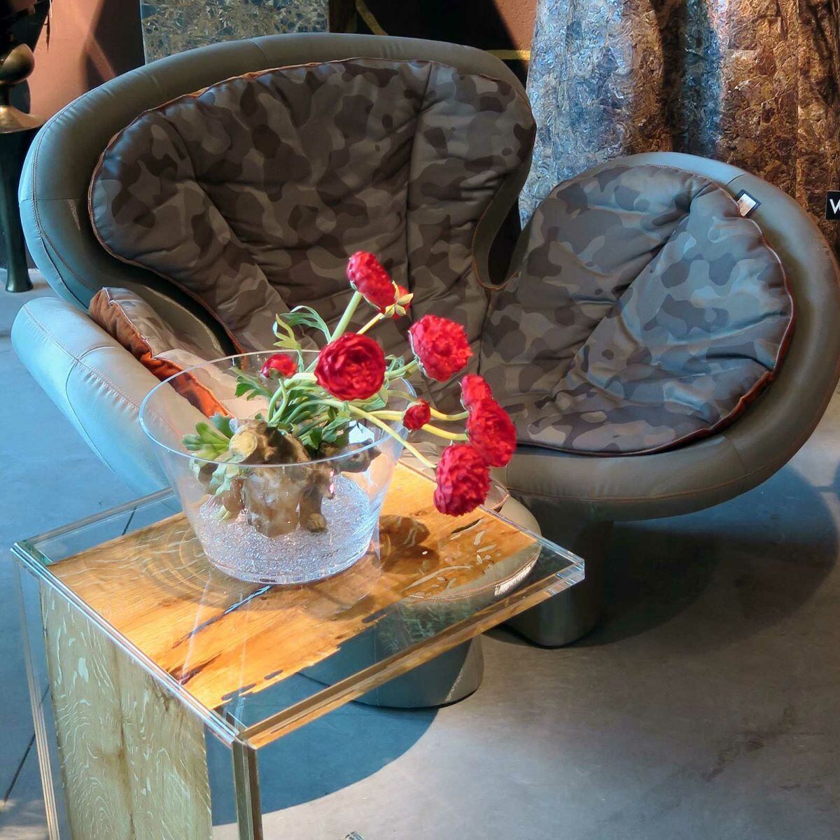 真紅のラナンキュラスと力強い枝が織りなす自然の情景を閉じ込めた、アート性の高いアレンジメント。テラリウムのような世界観とガラスビーズの煌めきが高級空間を演出します。