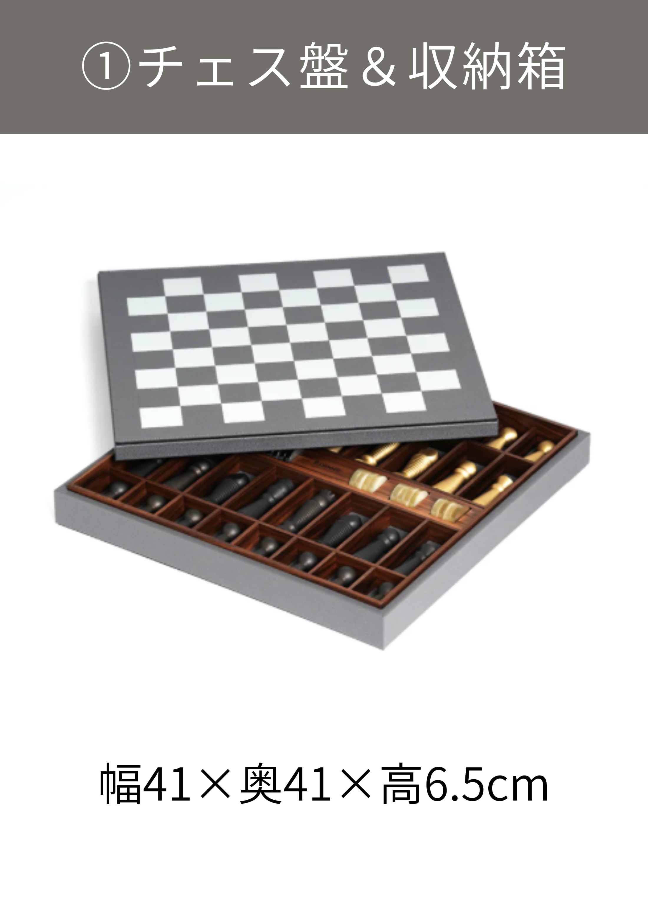①チェス盤&ウォールナット収納箱:幅41×奥41×高6.5cm